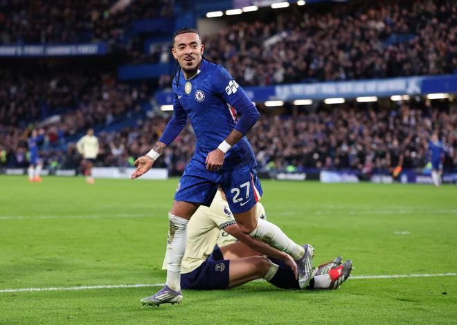 帕尔默——本赛季首次在斯坦福桥亮相——开场相对安静,但切尔西10号仅需一次灵光闪现的时刻就能激活自己,并扭转比赛势头。在埃弗顿开场一段不错的施压之后,切尔西右后卫古斯托将一记力度恰到好处的球快速传至帕尔默的跑动路线上,后者用擅长的左脚完成了果断的射门。这是帕尔默自九月以来的首粒进球——让他有机会展示其标志性的‘Shiver’庆祝动作,他上个月刚刚成功注册了这个动作的商标。